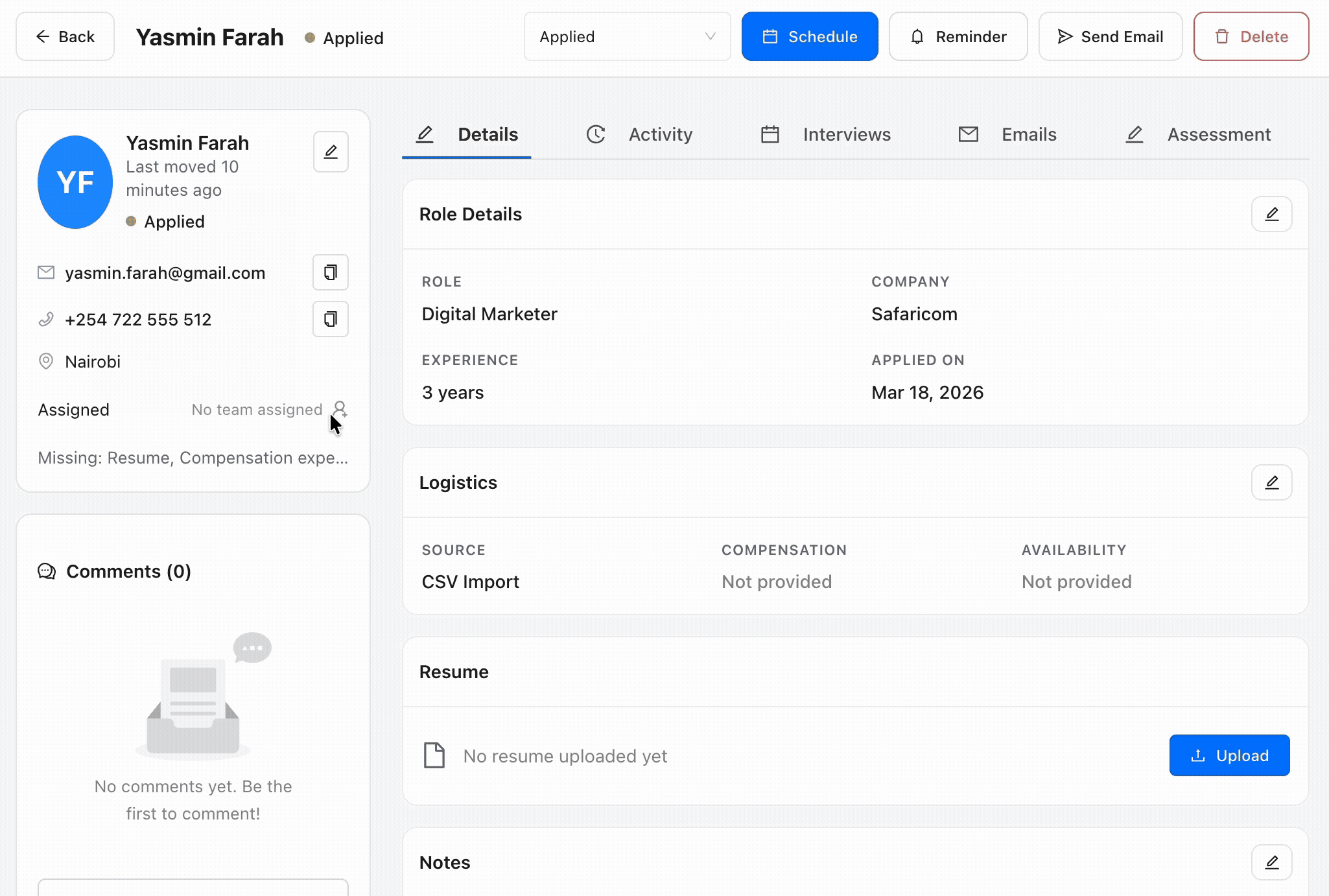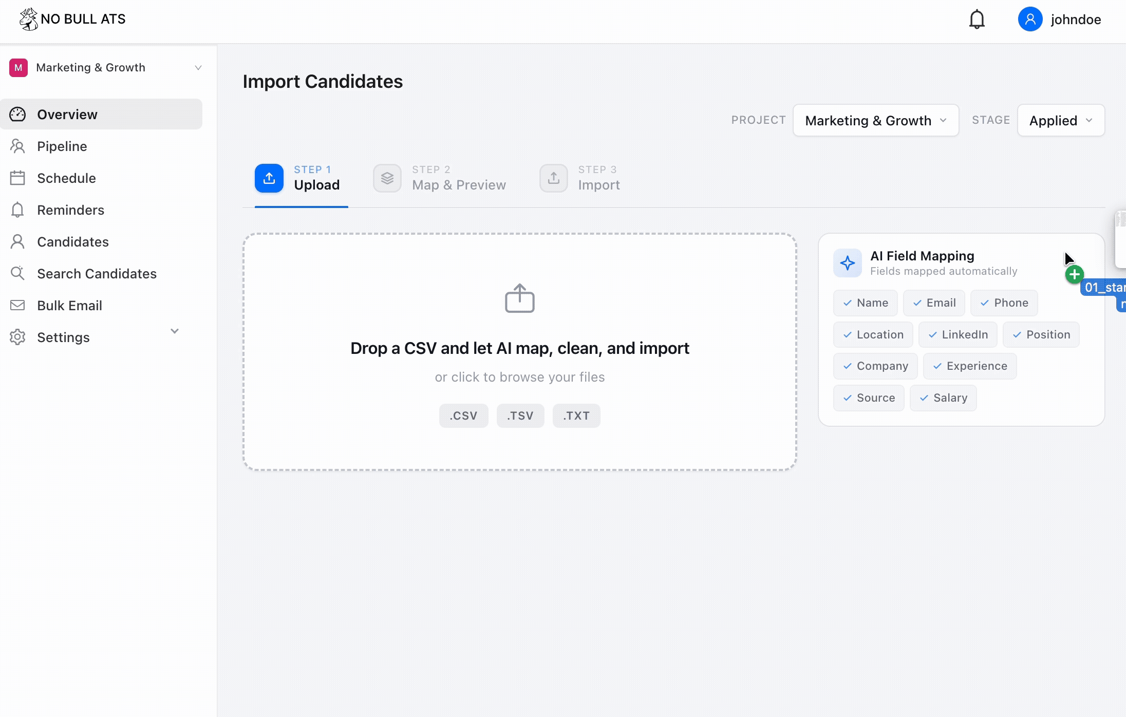 Import your existing candidates, notes, and records using AI-assisted migration, or let our team handle the process for you.